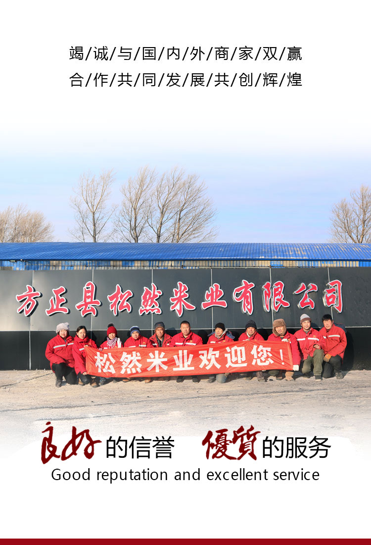 方正縣松然米業有限公司系一家專業從事大米加工的民營企業,公司座落在富有“富硒大米之鄉”的方正縣得莫利鎮吉興村 。無重工業,稻田均由水庫灌溉,有著特殊的農業自然資源。公司始建于2009年,占地面積10000平方米,糧食倉儲能力在2萬噸。松然米業從無到有,由小變大,始終堅持以科技為依托,建制科學合理,安全生產運作齊全,專業化程度高,在激烈的市場競爭中保持著增長勢頭,銷售額逐年增加。及時、準確、有效的為客戶服務提供了保證。成立以來,公司堅持以“鞏固、調整、發展、提高” 為原則,堅持走自己的產品之路,固定資產的投資在米業及其相關領域中增長,互網絡規模不斷擴大與現代企業相接軌的數字化程度不斷提高,產品在米業市場的占有率上升。
